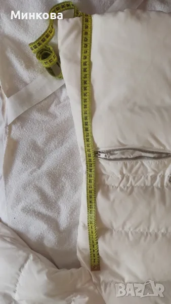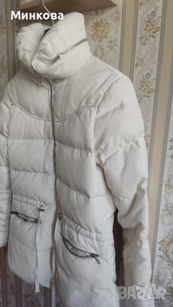 Спортно, много топло, пухено и леко, дамскo яке на Naf-Naf, размерS/M.Абсолютно запазено в бял цвят, леко шампанско