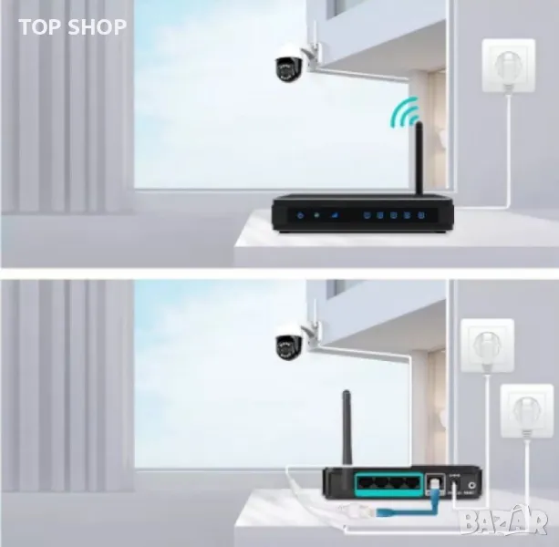 Двойна безжична 8MPX въртяща се камера за наблюдение → Обява 49330799