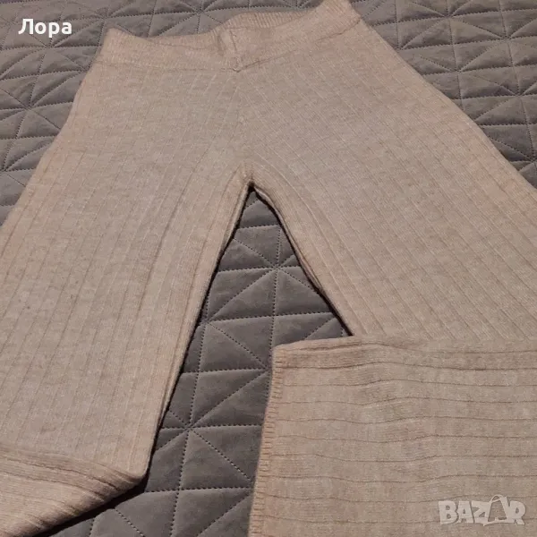 Дамски панталон плетиво. В талията е с ластик. Подходящ за С и М размер. Няма забележки. Ширина в талията от 35 до 55 см. Дължина от талията до долу 112 см. От чатала до долу 77 см. Изпращам с преглед и тест по Еконт с отстъпка от цената на доставка.