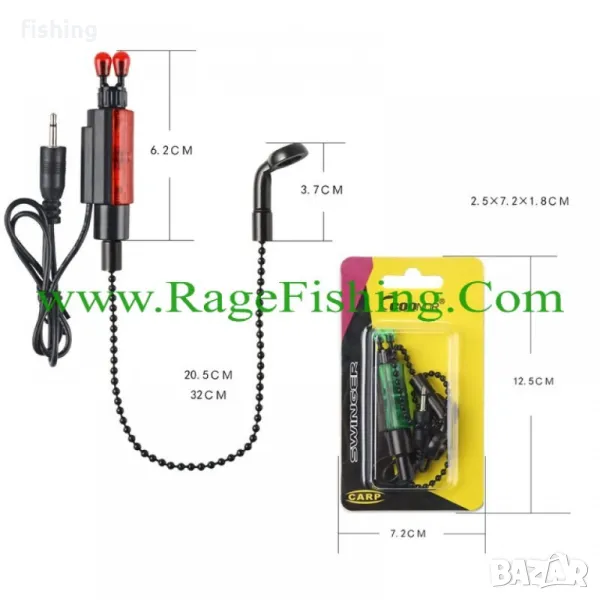 - Функции: Окачваща аларма за кълване, осветени индикатори за кълване, риболовен суингер, LED индикатор, светлинна аларма за кълване
