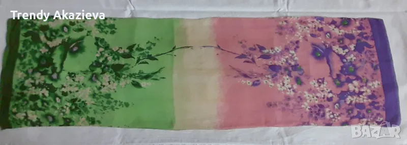 Двуцветното е копринено,много интересен модел.Размерите му са 95/27 см.