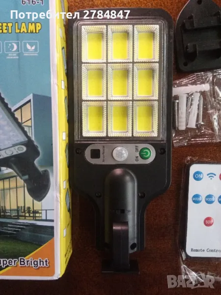 Сензорна соларна дворна лампа. Супер ярка. С дистанционно управление. В оригинална опаковка.