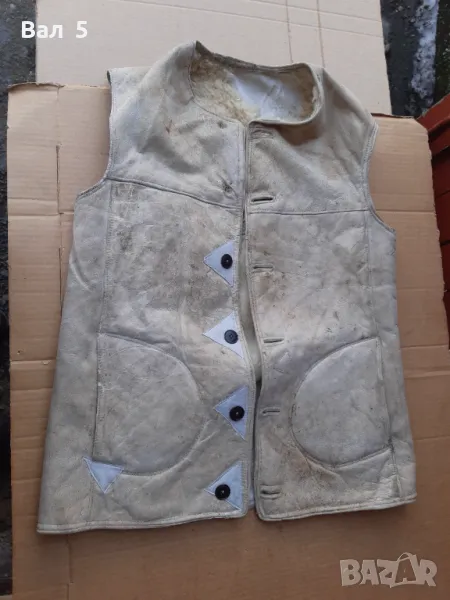 УНИФОРМА . Елек от агнешка кожа , използван в царската армия през ВСВ . Такива елеци са изпращани и за немската армия на Източния фронт . Гръдна обиколка - 106 см , дължина от яката - 73 см , може да се почисти . МОЖЕ ДА СЕ ИЗПОЛЗВА И ЗА СУРВАКАРСКА , КОЛЕДАРСКА , КУКЕРСКА ИЛИ ДРУГА НОСИЯ . При желание , мога да добавя 6 царски копчета на ЩИЛИЯНОВ на цена 15 лева за шестте . 1 д стгд