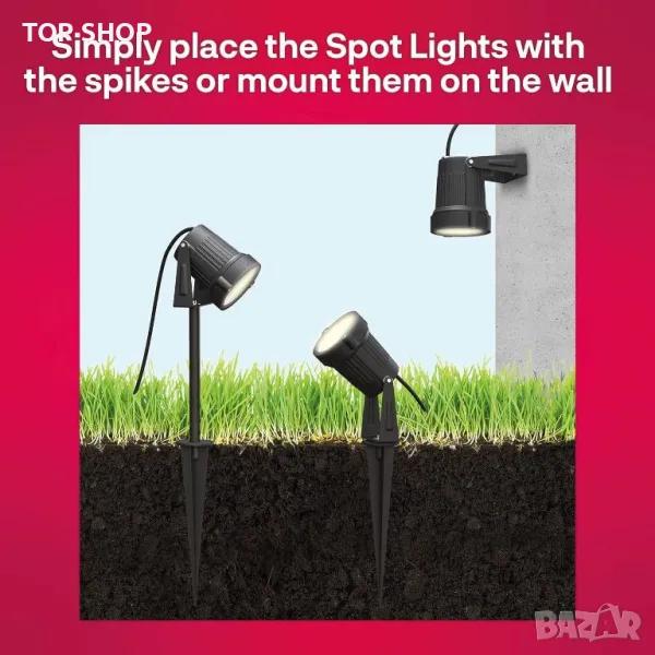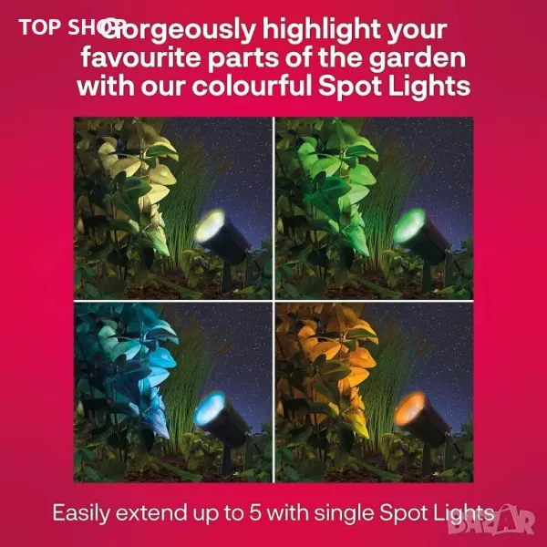 Тази интелигентна система за градинско осветление се управлява с глас. Настройката е лесна – просто поставете прожекторите във вашата градина и ги свържете към безопасно захранване. Предлага удобен автоматичен контрол, включващ се при здрач и изключващ преди лягане. Подобрете вашето външно пространство с регулируеми цветни акценти, създавайки вълшебна атмосфера за специални поводи.