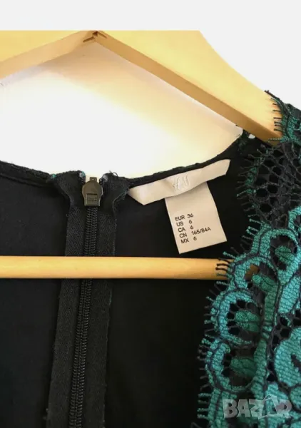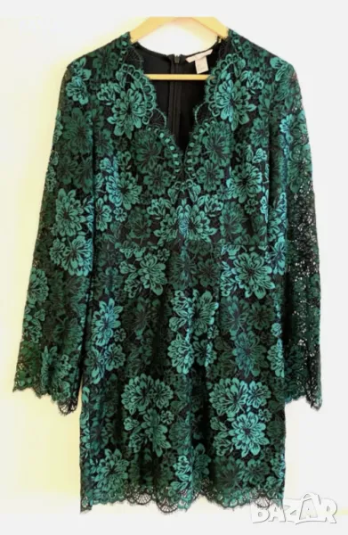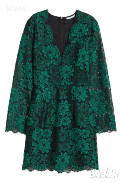 Нова рокля - 50% H&M дантелена с деколте изумрудено зелено