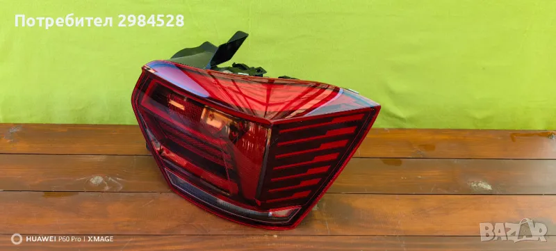Оригинален десен стоп за VW Polo 2G - В много добро състояние с изключение на една малка шупла от вътрешната страна на стъклото, над мигача, която не пропусва вода или прах.