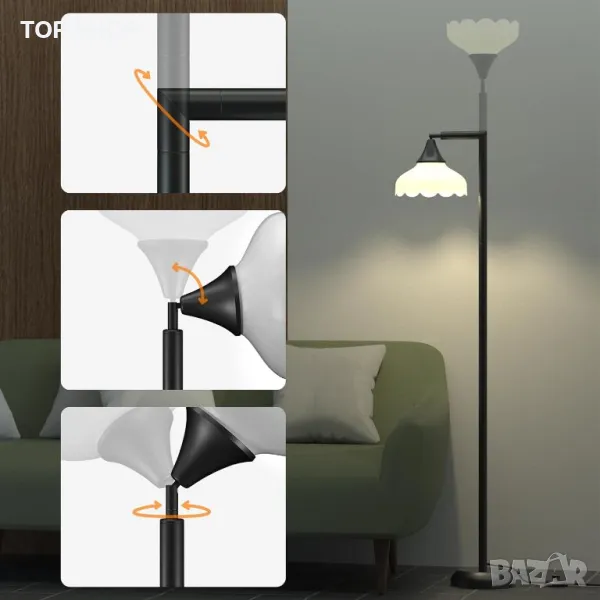 Моля използвайте системата за съобщения! Просто изпратете запитване. По телефона се губи време за уточняването на търсения от Вас продукт.LED подовата лампа разполага с въртяща се на 90°+90° глава за разнообразни режими на осветяване, което ви позволява да насочвате светлината нагоре за околна осветеност или надолу за фокусирана яркост. Тя предлага три опции за цветова температура (2700K/4000K/5000K) с 9W E27 крушка, осигуряваща персонализирано осветление за всеки повод. Удобните крачни контроли позволяват лесно превключване на режима и работа за включване/изключване, докато лесният монтаж и стабилната, утежнена основа правят инсталирането безпроблемно. Тази модерна подова лампа е подходяща за различни настройки, от всекидневни до офиси, добавяйки елегантен щрих към всяко пространство.