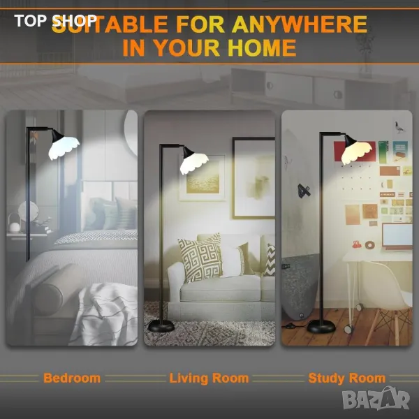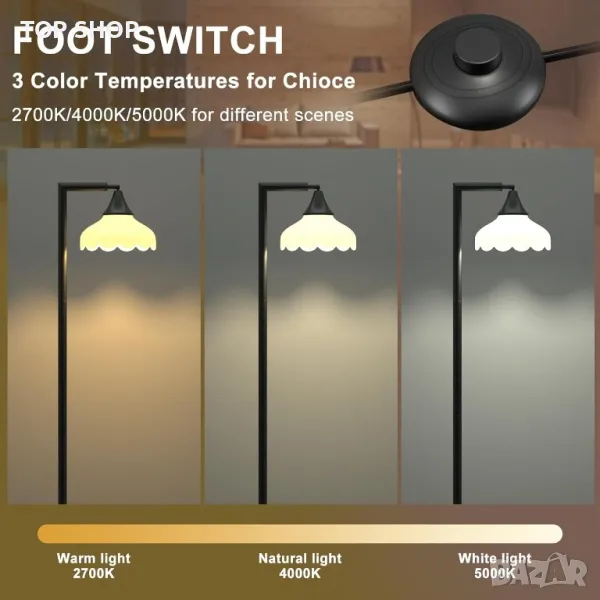 Подова LED лампа, лампион Silkycasters, 3 цветни температури, с абажур, 850LM