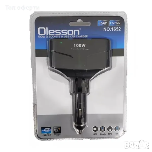 Разклонител с два USB порта и две гнезда за запалка.