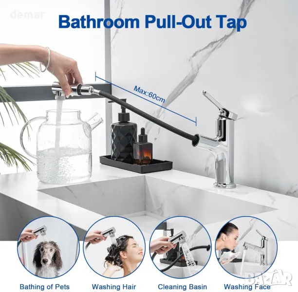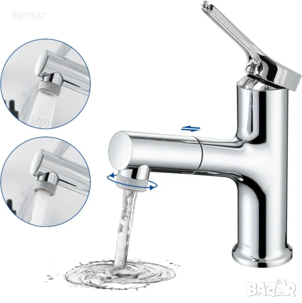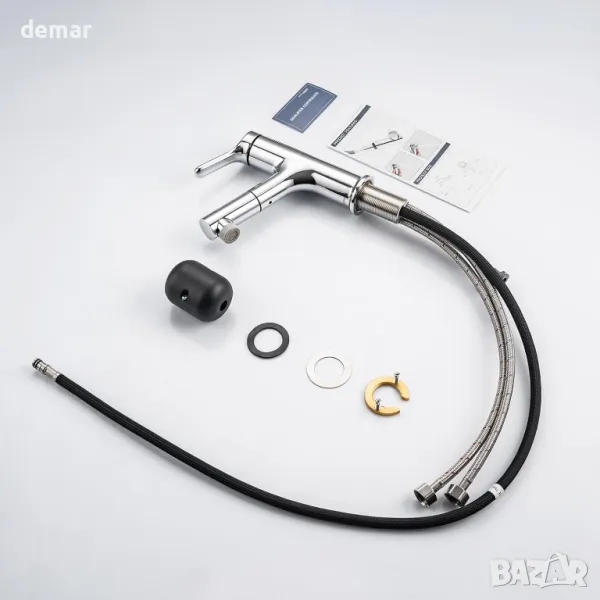 Този смесител с издърпващ се връх предлага гъвкавост с автоматично прибиране и два вида водна струя, което го прави идеален за мивки. Изработен от цинкова сплав с полирано хромирано покритие, той осигурява издръжливост, елегантност и лесна поддръжка. Висококачественият вътрешен механизъм позволява плавна работа, включващ дълготраен керамичен патрон с живот от 500 000 използвания за прецизен воден поток и контрол на температурата. Проектиран за системи с високо налягане, той включва 70 см гъвкави метални маркучи, стандартни за Обединеното кралство фитинги и прости инструкции за монтаж.