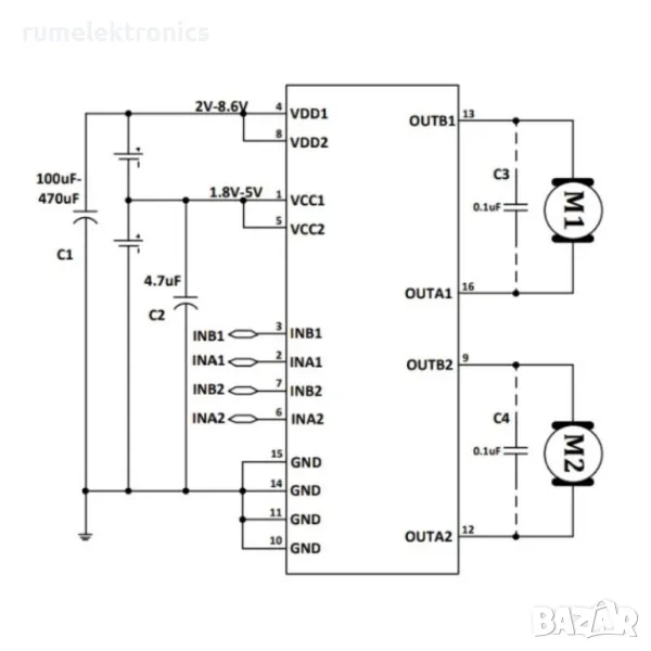 Dual-channel brushed DC motor drive circuit,SOP-16