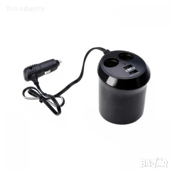 Разклонител с 2 гнезда за запалка и 2 USB порта разположени в горната част.