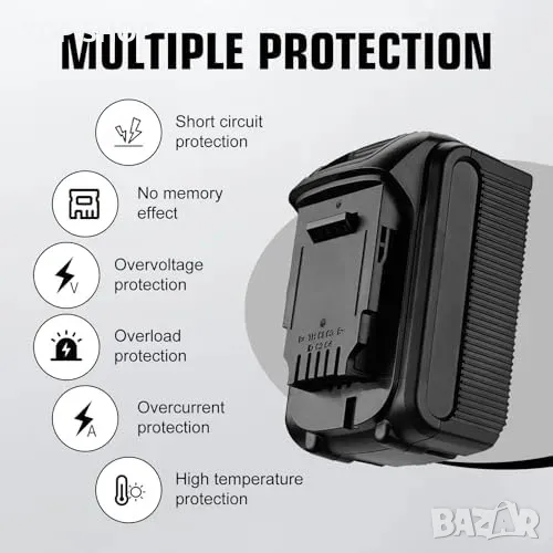 Заместителна батерия 18V, съвместима с Dewalt модели DCB184, DCB200, DCB182, DCB180