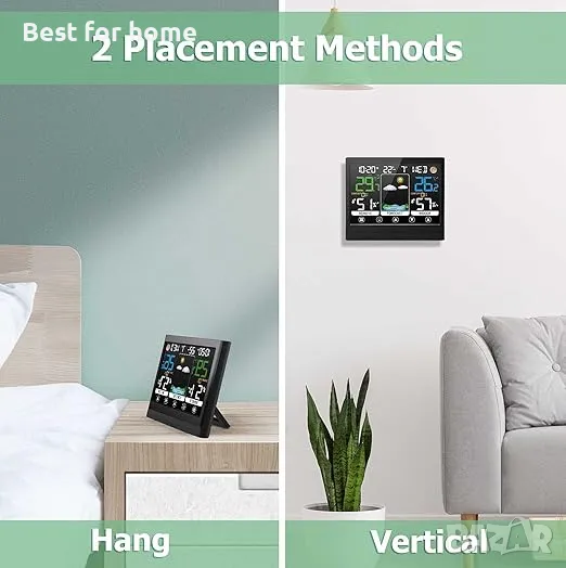 DCF радиочасовник – Надградихме стайния термометър, хигрометър с цветен дисплей и външен сензор, текущият час и дата се получават автоматично чрез DCF радиосигнали и часът се калибрира автоматично, не е необходимо ръчно да калибрирате часа всеки ден (трябва да регулирате ръчно часа, когато използвате за първи път).