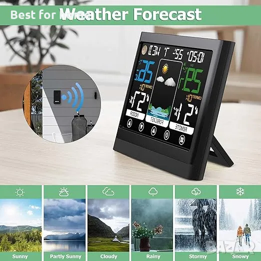 Безжична метеорологична станция с външен сензор Цветен дисплей Термометър с прогноза за времето Вътрешен външен хигрометър с будилник Дисплей за време .монитор за температура и влажност.