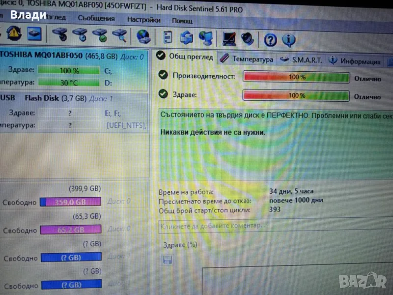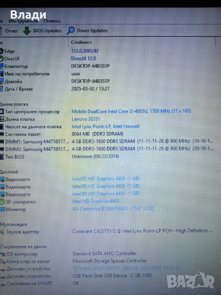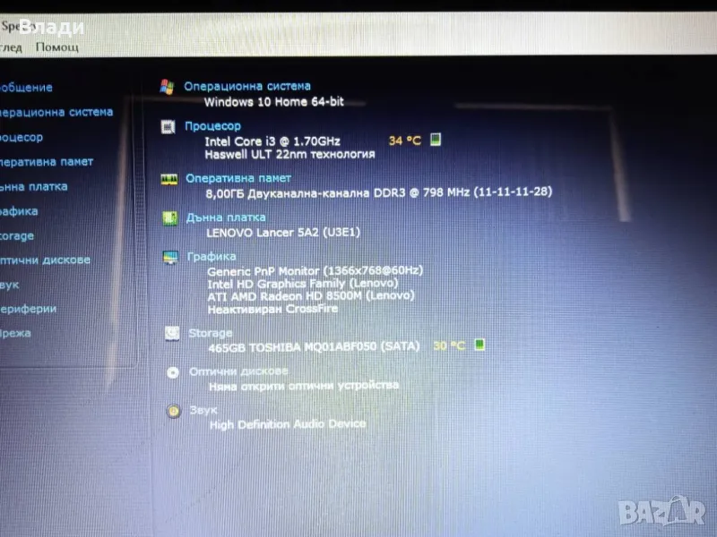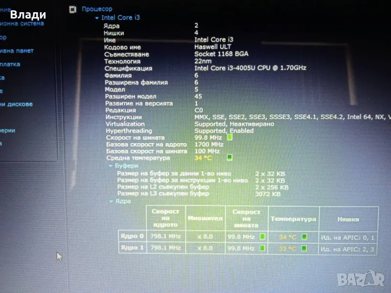 Инсталиран с Windows 64 bit,HDD Sentinel,Speccy и Aida 64,за да се тества преди да се плати.