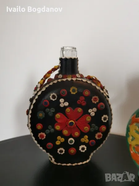 Малки и симпатични, стари бъклици от стъкло облечени в кожа и една керамична.