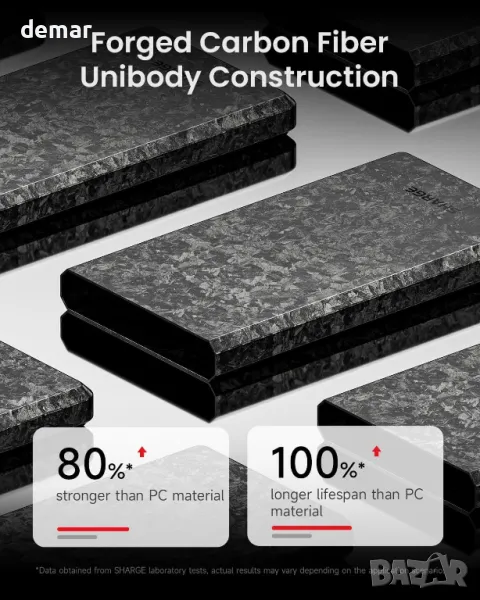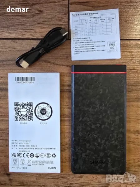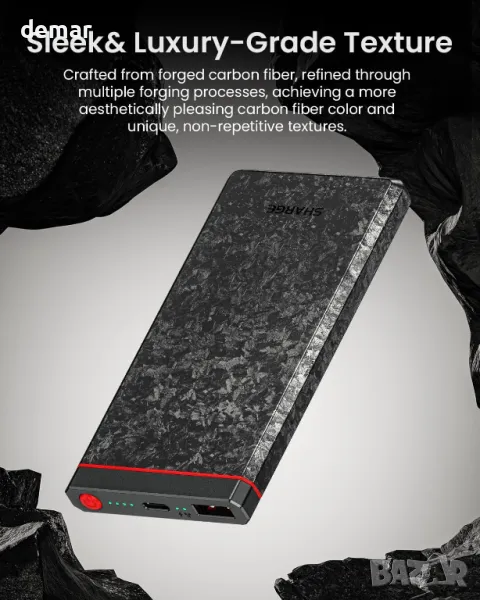 Външна батерия SHARGE CarbonBlade Power Bank, 10000mAh, 22,5 W, QC & PD3.0, USB-C и USB-A