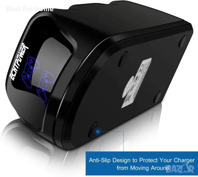 Функция против хлъзгане: 4 неплъзгащи се гумени крачета държат зарядното устройство на място, за да предпазят вашата зарядна станция от изместване и падане.