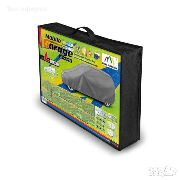Висококачественото покривало Mobile Garage е продукт, съобразен с нуждите на водачите. Покривалото е изработено от 4-слоен материал, който е плътен, здрав и издръжлив. Предпазва целия автомобил от вредните влияния на околната среда. Покривалото за Mobile Garage осигурява адекватна защита за вашия автомобил през цялата година. Функционалността му може да бъде оценена по всяко време на годината. През зимния сезон предотвратява отлагането на сняг, скреж и лед, а също така е устойчив на замръзване; през есента предпазва от дъжд, вятър, листа и дървесни сокове; а през лятото и пролетта предпазва от UV лъчи, прах и птичи изпражнения.