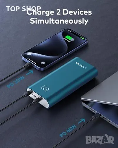 Мощност 65W: Ефективно зареждане на лаптопи и смартфони.