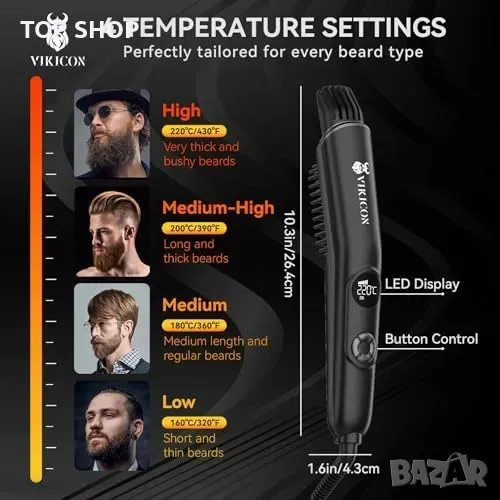 4 настройки за температура: От 160°C до 220°C за персонализирано оформяне според типа брада.