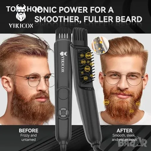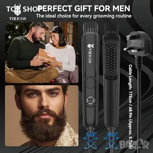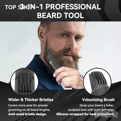 3-в-1 професионален уред за брада: Комбинира четка, изправяне и обем в един инструмент, подходящ за всички видове бради – от тънки до най-гъсти и непокорни.