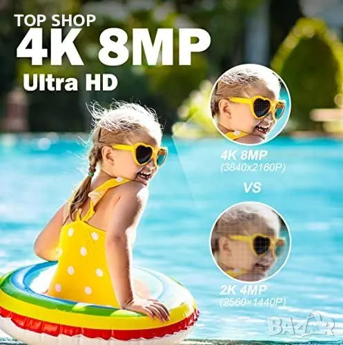 8МР 4К Ултра HD разделителна способност: Осигурява изображения във висока разделителна способност денем и нощем с помощта на SSC338Q чип и Sony IMX415 CMOS сензор.