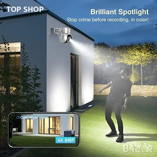 Нова Външна WiFi Камера 4K с Детектор за Хора Животни, Аудио, WiFi