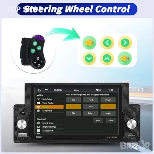 Ново 1 DIN 5.9" CarPlay Android Auto радио + камера и Bluetooth за кола