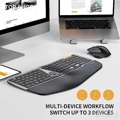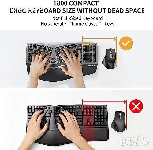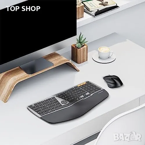 Нова Ергономична безжична клавиатура и мишка Windows Mac Android компютър лаптоп работа офис