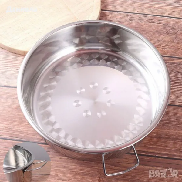 Този съд от неръждаема стомана е идеален за всяка кухня – устойчив, практичен и стилен!Материал: Неръждаема стомана;Форма: Кръгла;Размери: 21 см/23 см/25 см;Цвят: Сребрист;Употреба: Готвене, сервиране, съхранение;Подходящ за: Домашна и професионална употреба.размер 21см -цена 15.00лв размер 23см-цена 16.00лв размер 25см -цена 17.00лв