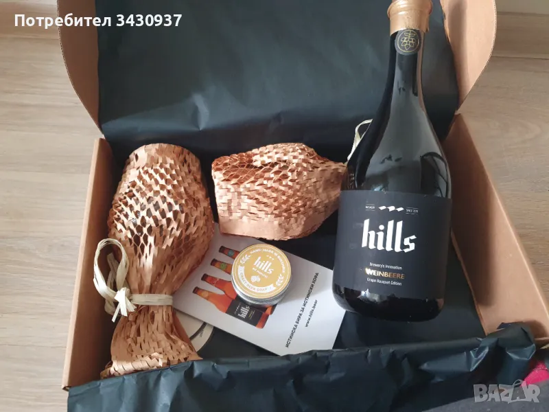 бутилка Hills Weinbeere 750 мл, 2 ръчно изписани Hills чаши, 2 подложки, домашен бирена сапун