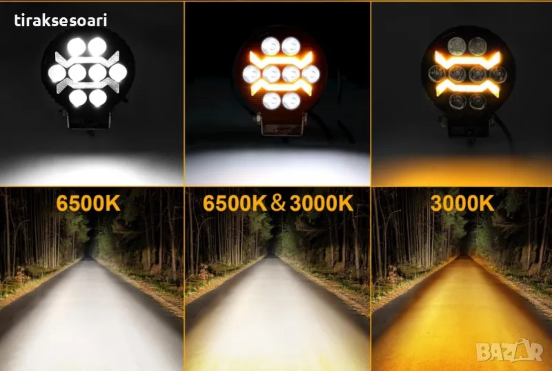 Цветова температура: 6500K (бяла светлина) + 3000K (оранжева светлина) за комбиниран ефект.