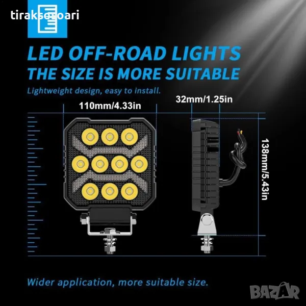 Боен фар за трактори ATV мотокари камиони Квадрат