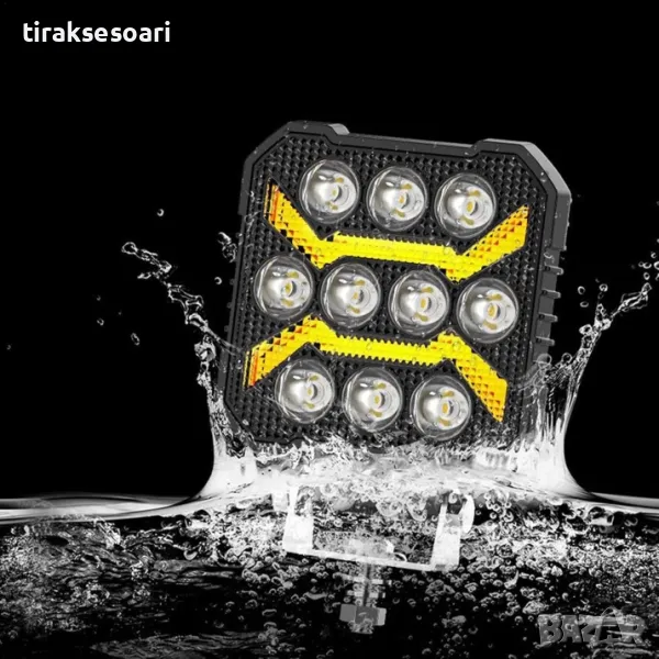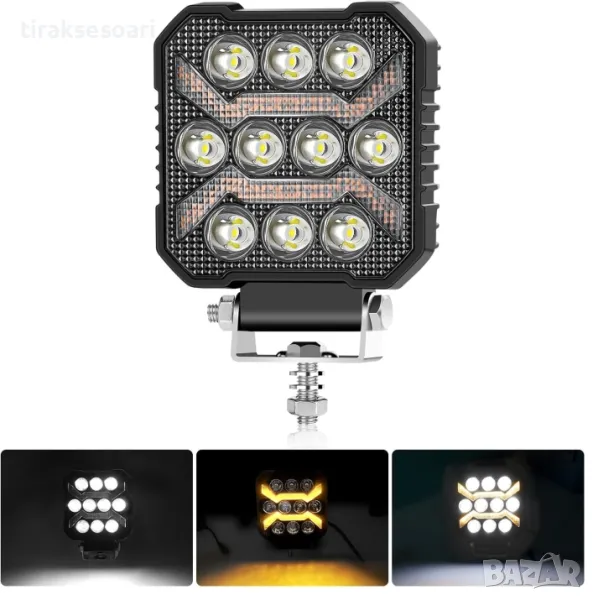 Универсална мощна LED ЛЕД диодна лампа халоген фар с бяла светлина и DRL жълта светлина 15000LM за камион трактор ролбар оффроуд АТВ джип земеделски и селскостопански машини и др. 12-24V