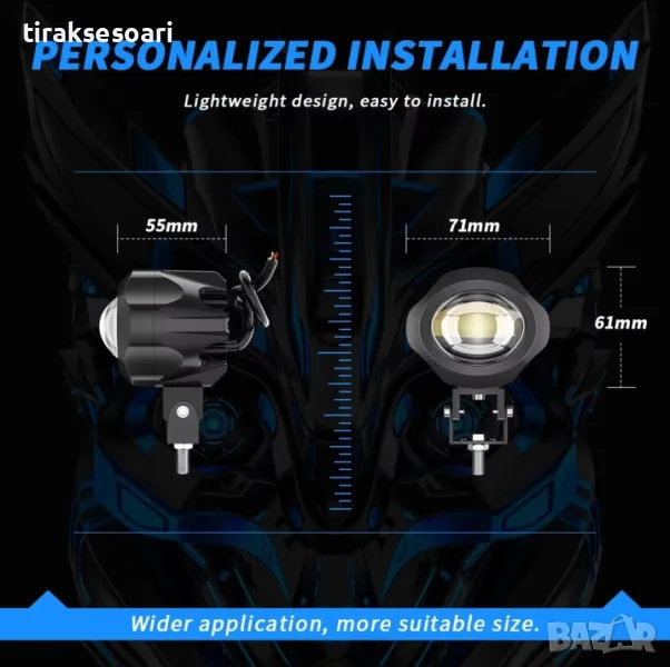 Универсален LED Диоден фар лупа къси дълги и халоген за мотор ATV Джип