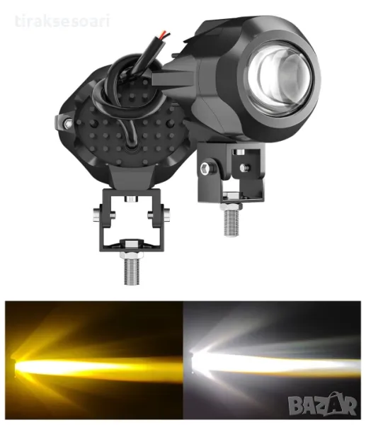 Работна Лампа къси/дълги светлини бяла + жълта 9V - 60V за джип офроуд мотор мотоциклет