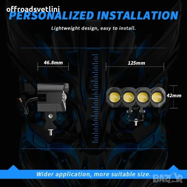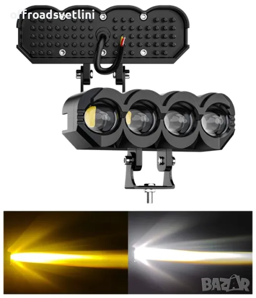 Универсален 4 LED Диоден фар къси дълги и халоген за мотори ATV Джип