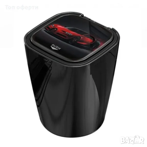 Елегантен пепелника за автомобил в гланцов черен цвят.
