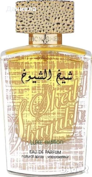 Парфюм Lattafa Perfumes Sheikh Al Shuyukh Luxe EditionПредставен на пазара: 2015Марка: lattafa perfumesСерия: sheikh al shuyukh luxe editionГрупа продукти: парфюмни водиКласификация: мас маркетОбем: 100 mlДържава производител: ОАЕНаправено в: ОАЕПол: унисексТип аромат: източни, пикантниВръхни нотки: Канела, Роза, ШафранСредни нотки: Карамел, Пачули