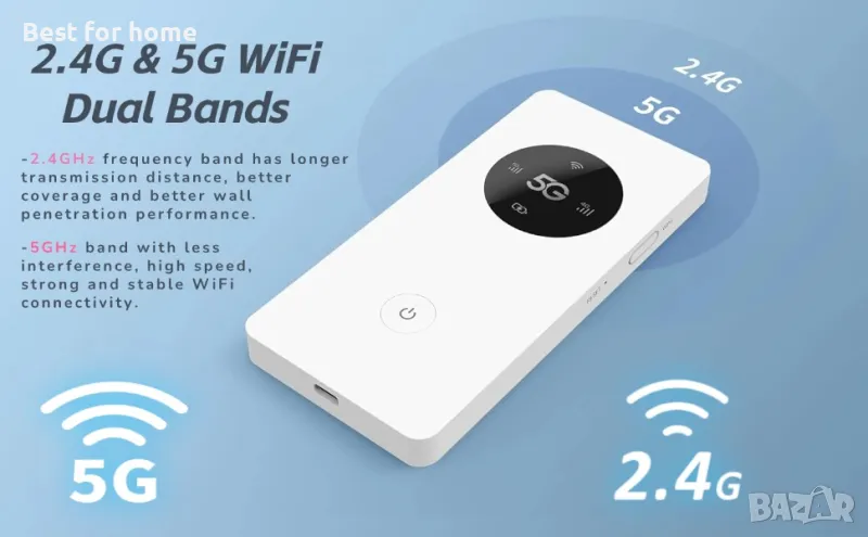 2,4 GHz и 5,0 GHz: Този преносим 4G рутер поддържа 2,4 GHz, 5,0 GHz и 802.11a /b/g/n/ac WIFI протоколи, за да осигури плавно предаване на данни и стабилна производителност за всички устройства.