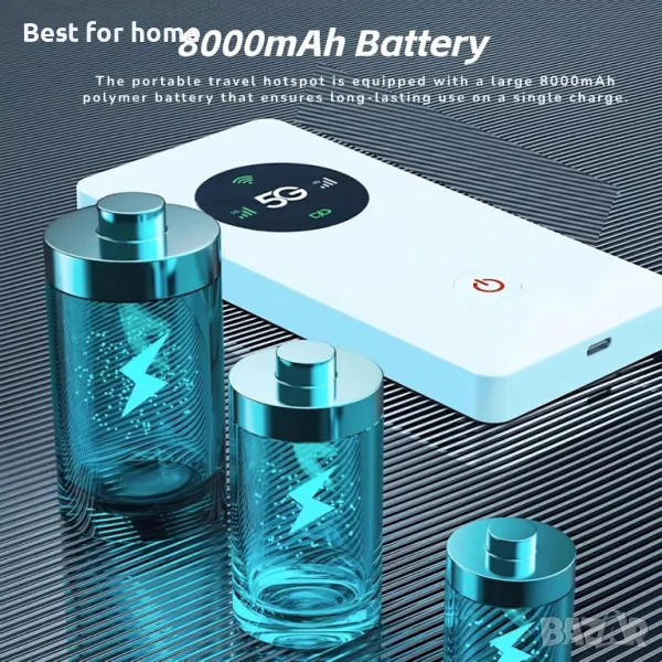 ДЖОБЕН РАЗМЕР Можете да свържете любимите си устройства към Wifi и да изпитате лекотата на сигурна мрежова връзка в джоба си, 8000mAh акумулаторна батерия, подходяща за пътуване, офис, къмпинг, планинарство, оцеляване в дива природа и игри за много играчи.