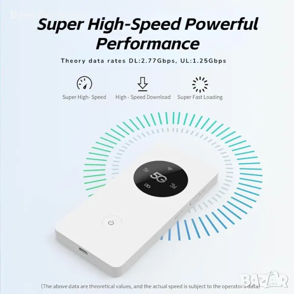 Ултра-бърза 5G точка за достъп – Тази 5G WiFi мобилна точка за достъп ви позволява да изпитате неограничен високоскоростен 5G интернет, скорост на изтегляне до 2,77 Gbps и скорост на качване до 1,25 Gbps за безпроблемно сърфиране, стрийминг и онлайн игри.
