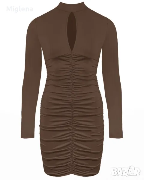 Ефектна рокля в актуалният цвят мока. Страхотно предложение за вашата елегантна визия. Материята на роклята е полиестер със силна еластичност. Перфектна кройка и изработка. Размер S/M. Единична бройка.