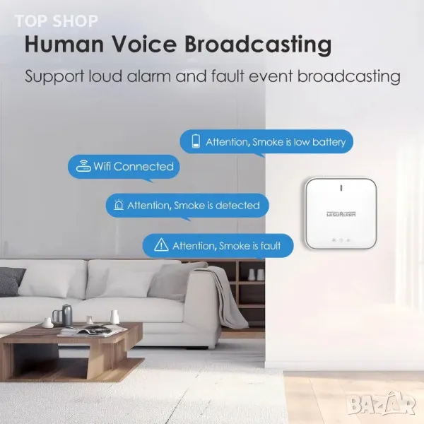 Интелигентна аларма за дим с комплект базова станция, детектор за дим → Обява 49338349