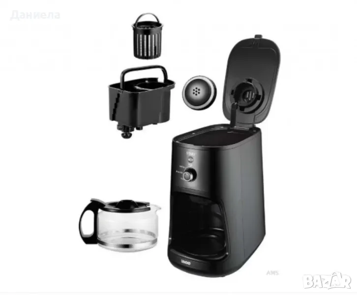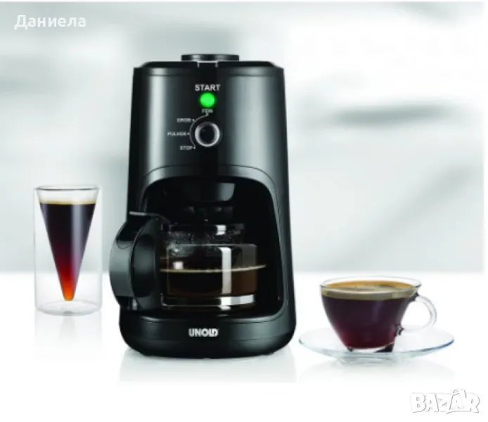 Тип продукт: Кафемашина;Компактна електрическа машина за приготвяне на кафе с устройство за смилане 0.6 L, 900 W - UnoldТази компактна кафе машина предлага удобство и ефективност с мощност от 900 W и вместимост от 0.6 литра (за 4 чаши кафе). Вградена кафемелачка с капацитет за 35 гр зърна позволява два типа смилане – фино и едро. Размери: 17.8 x 29.5 x 29.0 смМощност: 900 W;Напрежение: 220 - 240 V~Честота: 50 Hz;Стъклена кана с вместимост 0.6 литра;Вградена кафемелачка с филтър;2 типа смилане на кафе: фино и едро;Сваляем постоянен филтър и резервоар за вода;Подгряваща плоча и защита;Функция за поддържане на топлината до 40 минути;Съвместимост с съдомиялна машина;Допълнителни аксесоари: мерителна лъжица, четка за почистване.