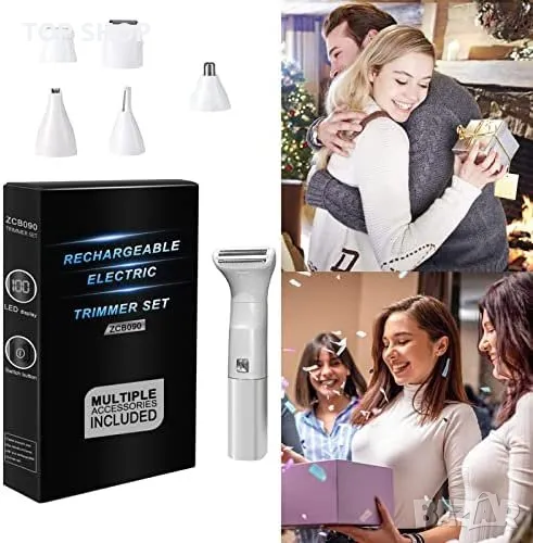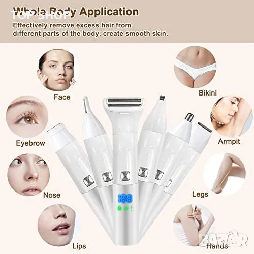 Електрическа самобръсначка 6 в 1, предназначена за жени, с 6 сменяеми глави за различни нужди при бръснене.