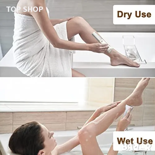 Подходяща за мокра и суха употреба, което позволява бръснене под душа или върху суха кожа.