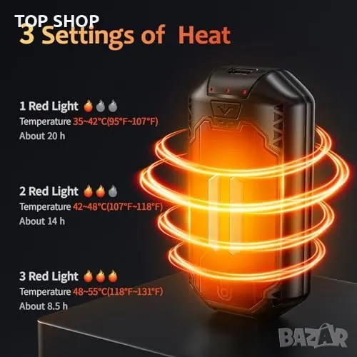3 Режима на Температура: Ниска (95-107.5°F), средна (107.5-118.5°F), висока (118.5-130°F)